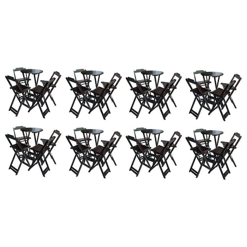 Kit 8 Jogos De Mesa Bistrô De Madeira Com 4 Cadeiras Dobravel Ideal Para Bar E Restaurante Tabaco