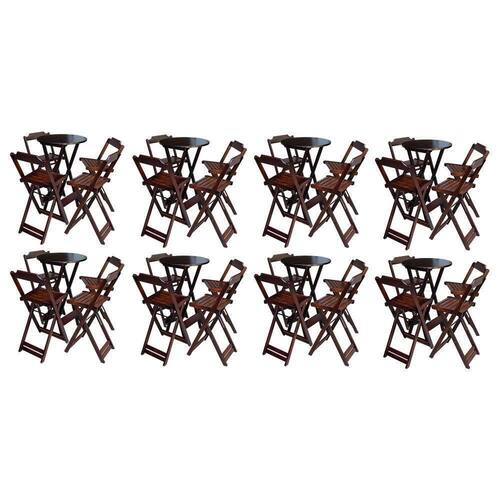 Kit 8 Jogos De Mesa Bistrô De Madeira Com 4 Cadeiras Dobravel Imbuia - Marrom