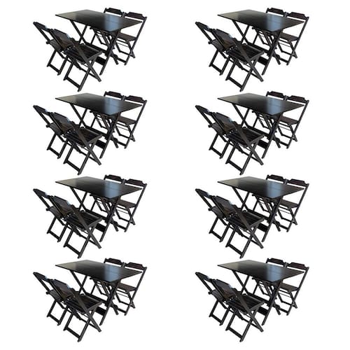 Kit 8 Jogos De Mesa Com 4 Cadeiras De Madeira Dobravel 120x70 Ideal Para Bar E Restaurante - Tabaco