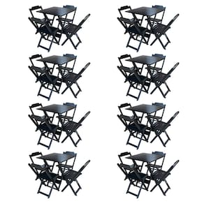 Kit 8 Jogos de Mesa com 4 Cadeiras de Madeira Dobravel 70x70 Ideal para Bar e Restaurante - Preto - Preto