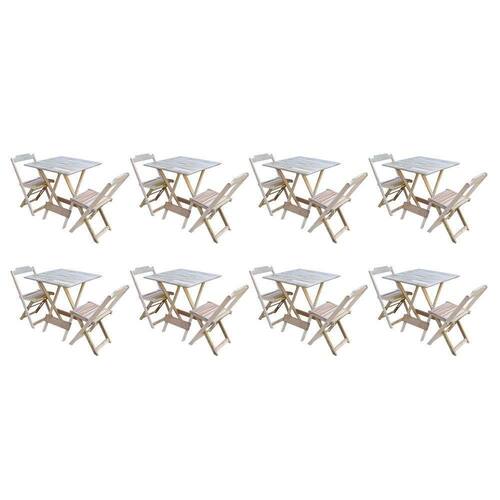 Kit 8 Jogos De Mesa Dobravel Com 2 Cadeiras De Madeira 70x70 Ideal Para Bar E Restaurante - Sem Pint