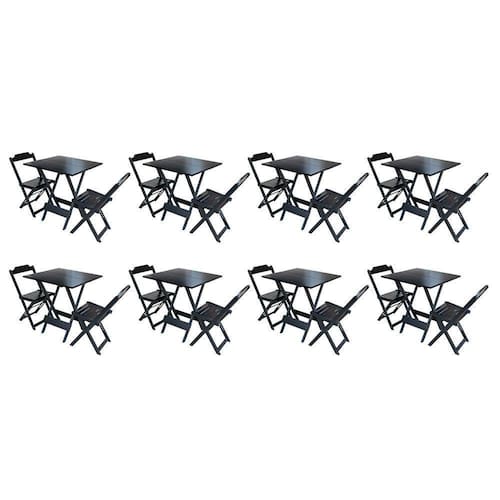 Kit 8 Jogos De Mesa Dobravel Com 2 Cadeiras De Madeira 70x70 - Preto