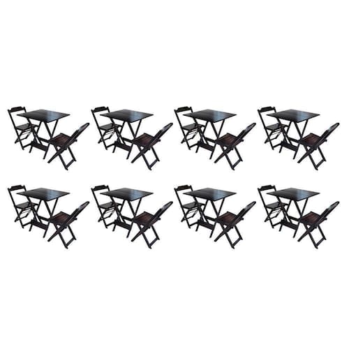 Kit 8 Jogos De Mesa Dobravel Com 2 Cadeiras De Madeira 70X70 - Tabaco - Marrom