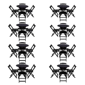 Kit 8 Jogos De Mesa Dobravel Com 4 Cadeiras Tampo Redondo 70x70 Preto - Cor: Preto