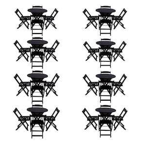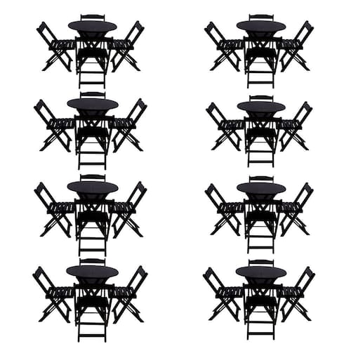 Kit 8 Jogos De Mesa Dobravel Com 4 Cadeiras Tampo Redondo 70x70 Preto