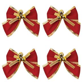 2 Kit Com 4 Laços Decorativo Vermelho E Dourado 10cm;