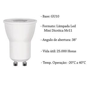 Lâmpada led mini dicroica mr11 gu10 4w 4000k branco neutro