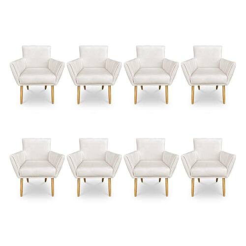 Kit 8 Poltronas Decorativa Leticia Suede Pés Palito Castanho - Pallazio Cor Marrom Rato