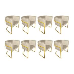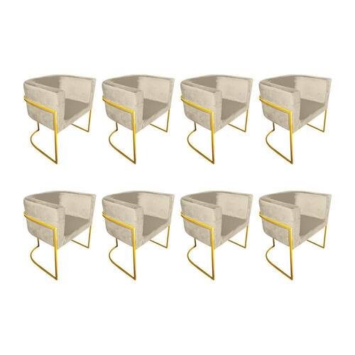 AS IMAGENS SÃO MERAMENTE ILUSTRATIVAS E PODEM SOFRER VARIAÇÕES DE COR E PEQUENOS DETALHES DE ACORDO COM O SEU MONITOR, ILUMINAÇÃO DO AMBIENTE E ATÉ MESMO A SUA PERCEPÇÃO VISUAL.Kit 8 Poltronas Decorativa Sala De Estar Base De Ferro Dourada Veludo Bege