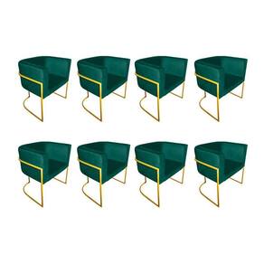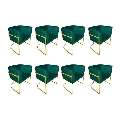 AS IMAGENS SÃO MERAMENTE ILUSTRATIVAS E PODEM SOFRER VARIAÇÕES DE COR E PEQUENOS DETALHES DE ACORDO COM O SEU MONITOR, ILUMINAÇÃO DO AMBIENTE E ATÉ MESMO A SUA PERCEPÇÃO VISUAL.Kit 8 Poltronas Decorativa Sala De Estar Base De Ferro Dourada Veludo Verde