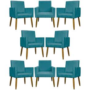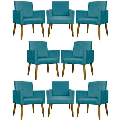 Kit 8 Poltronas Decorativas Mari Pé Palito Castanho - Azul-turquesa Suede