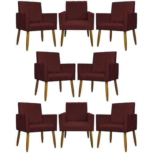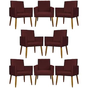 Kit 8 Poltronas Decorativas Mari Pé Palito Castanho - Bordô Suede - Marrom