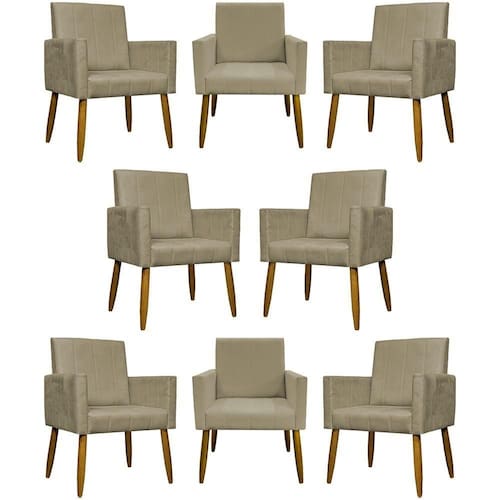 KIT 8 POLTRONAS MARI SUEDE CORES PÉ PALITO 30 CM CASTANHO