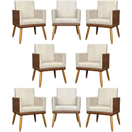 Kit 8 Poltronas Decorativas Modernas Para Recepção Lis Corino Suede Cores Pé 30 Cm - Bege, Suede/corino