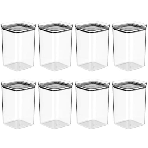 Kit 8 Potes Herméticos 3,5L Porta Mantimentos Ou Block Plástico Natural Quadrado.