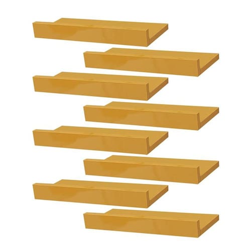 Kit 8 Prateleiras Porta Quadros 50 x 15cm Amarela Suporte Invisível. A prateleira Crie Fácil foi desenvolvida pensando em deixar o seu ambiente mais organizado e criativo de forma prática e simples. Produto produzido em MDP de alta qualidade garantindo resistência e durabilidade. A prateleira é acompanhada de suporte para fixação de embutir invisível. Cor: Amarelo. Tamanho: 50 x 15cm. Material: Madeira MDP. Fixação: embutir invisível. Instruções de uso e instalação: Para fácil limpeza, utilize pano levemente umedecido. Não utilizar produtos químicos ou abrasivos. Acompanha embalagem com as instruções de montagem e fixação. *Observação: todos os itens de decoração das fotos não acompanham o produto