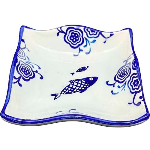 Características Gerais do Produto: - Material: Cerâmica - Modelo: Tigela Peixe - Cor: Azul; Branco - Dimensões aproximadas: Diâmetros 12cm X 14cm - Capacidade em litros: 100ml X 250ml Garantia: - Garantia do site - 1 Mês