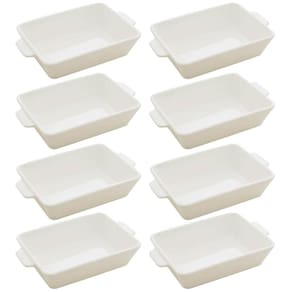 Kit 8 Travessas Refratários de Porcelana 23,5x15cm Assadeiras Brancas Buffet Restaurante - Kit de 8 travessas refratárias de porcelana