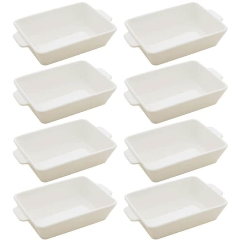 Kit 8 Travessas Refratários de Porcelana 23,5x15cm Assadeiras Brancas Buffet Restaurante.