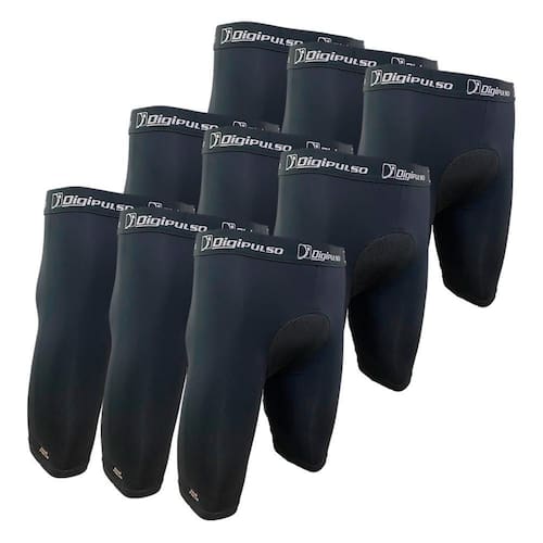 O Kit da Digipulso é composto por 9 bermudas de ciclismo, e são confeccionadas em tecido, 89% poliamida, 17% elastano que permite alto desempenho e liberdade de movimentos que garante ótima compressão, conforto e rápida evaporação do suor. Conta também com uma super proteção UV 90+ que garante mais resistência e flexibilidade. Perfeito para qualquer atividade física.