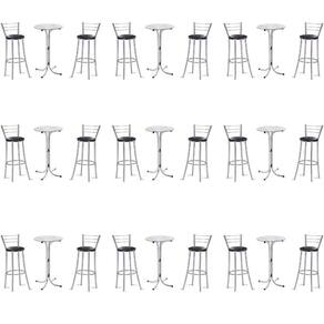 Kit 9 Bistros Com 9 Banquetas Cromadas-gatmagazine O conjunto Bistrô com banquetas GatMagazine além de bonito e charmoso traz harmonia para o seu ambiente!O Bistrô e a banqueta são feitos em aço cromado que traz mais resistência ao produto,O tampo do Bistrô é em vidro de 6mm com 60 centimetros de diamêtro.O produto é próprio para cozinhas,sala de jantar ou espaços gourmet. Marca: NOVA DECOR