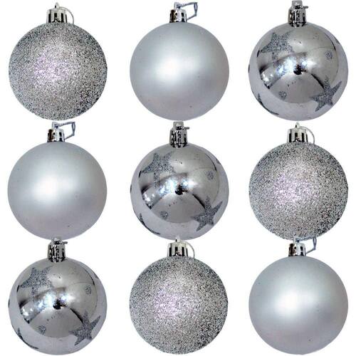 1 Kit Com 9 Bolas Para Árvore De Natal Prata Com Glitter De 60mm;