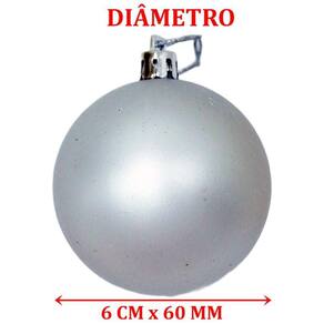 Características Gerais do Produto: - Material: Plástico - Modelo: Bolas De Natal - Cor: Prata - Dimensões aproximadas: Diâmetro 6cm 60mm Garantia: - Garantia contra danos no transporte