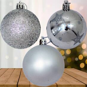 Este Natal, adicione um toque de sofisticação e glamour à sua decoração com nossas bolas de Natal Prata Com Glitter. Perfeitas para criar uma atmosfera mágica e festiva, elas são o enfeite ideal para a sua árvore de Natal!
