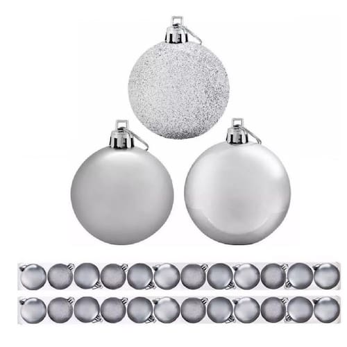 Kit 9 Bolas De Natal Mista Prata 6cm Pendente Árvore