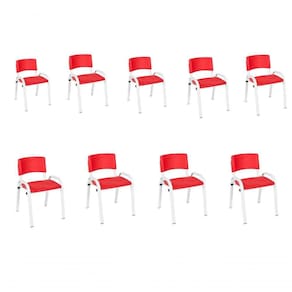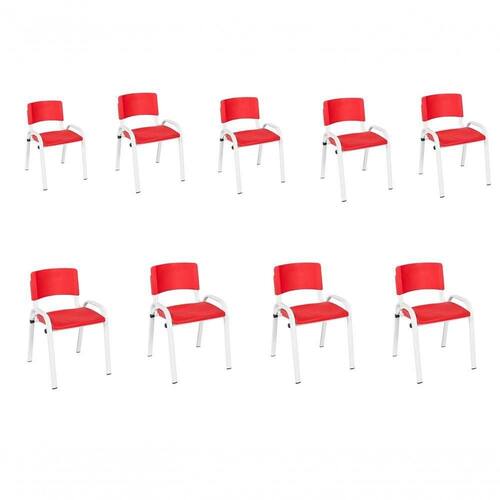 Kit 9 Cadeiras Infantil Iso, Escola, Base Branco- Vermelho