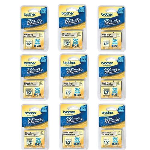 Kit 9 Fita Para Rotulador Brother M231 12MM Preto e Branco