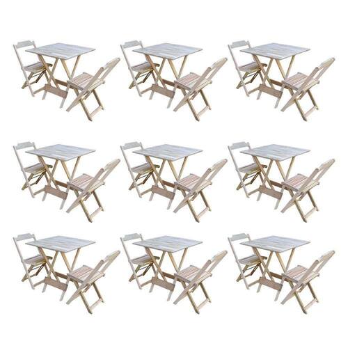Kit 9 Jogos De Mesa Dobravel Com 2 Cadeiras De Madeira 70x70 Para Restaurante E Bar - Sem Pintura