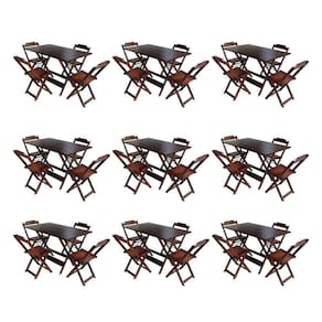 Kit 9 Jogos De Mesa Dobravel Com 4 Cadeiras De Madeira 120X70 Para Restaurante E Bar - Imbuia - Marrom