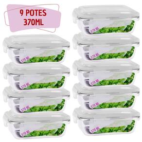 Kit 9 Potes de Vidro Hermetico 370ml 4 Travas Mantimentos Marmita - Kit de 9 potes de vidro herméticos para mantimentos