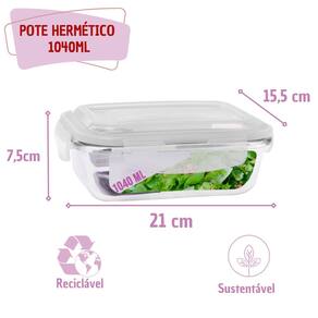 Pote de Vidro com Tampa Hermética Retangular - 1040ml