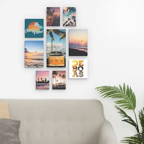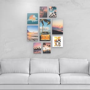 KIT 9 PLACAS DECORATIVAS Decorar a casa é sempre um momento pra lá de especial Você pode ousar na decoração e deixar sua casa ainda mais alegre e bonita com nossos kits. TAMANHO & INSTALAÇÃO Tamanho total: 64 cm comprimento X 84 cm altura 1 peça central: 20x40 cm 2 peças laterais: 20x28 cm 2 peças laterais: 20x20 cm 2 peças acima: 14x20 cm 2 peças abaixo: 14x20 cm Espaçamento entre as peças: 2 cm INSTALAÇÃO A instalação é bem simples, enviamos com fita dupla face para melhor fixação Não precisa furar a parede . Assim evitando furos e estragos na sua parede. IMPRESSÃO & ACABAMENTO Nossos quadros e placas são impressos em adesivo de alta qualidade, aplicado em MDF com espessura de 6mm. Não necessita de moldura.