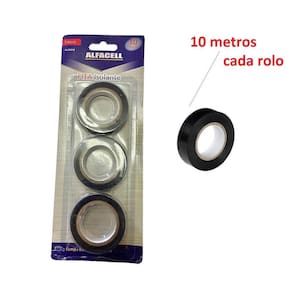 Contém: 9 rolos de Fita Isolante em PVC de 10mx17mm ALFACELLbrbrMaterial: pvc com adesivo PSA- Classe BbrMedidas aproximadas: 10M x 17mmbrCor: PretobrMarca: ALFACELLbr-Fácil aplicar e manusear, ideal para pequenos reparos elétricos, reforço em cabos de ferramentas e manutenções.brbrbrImagens meramente ilustrativasbr Ean: 7796907403015
