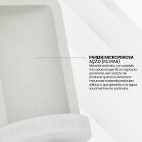 Feita de cerâmica microporosa, filtra e retém as partículas sólidas em suspensão na água, deixando-a cristalina.
