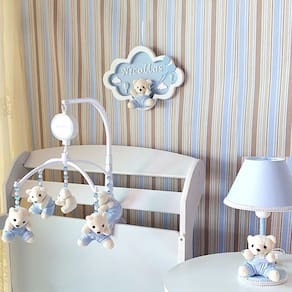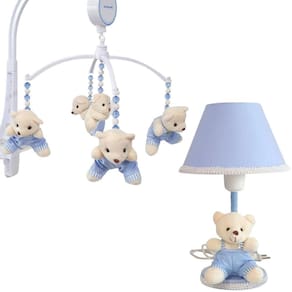 Kit Abajur E Móbile Musical Urso Menino