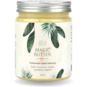A máscara magic butter é um tratamento completo que repõe nutrientes, aminoácidos e lipídios necessários para manter os fios livres de ressecamento, quebra e pontas duplas. Feito com buriti, murumuru, crambe e proteínas vegetais. Após higienizar os cabelos, aplique uma quantidade necessária para enluvar o comprimento dos fios até as pontas. Deixe agir por 5 minutos e enxágue. Use uma por semana. Marca: Abela