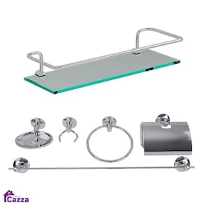 Kit acessório para banheiro aço inox 6 peças com porta shampoo reto Seja bem vindo a loja oficial minhacazza Kit stander para banheiro + porta shampoo vidro temperado