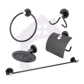 A papeleira porta papel higiênico e a saboneteira são produzidas em aço inox, o porta toalha de banho e o porta toalha de rosto e o cabide gancho são produzidos em alumínio anodizado e polido e as canoplas são de aço inox.