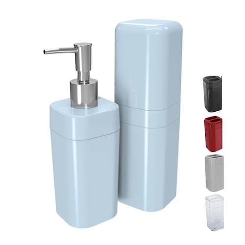 Kit Acessório Banheiro Porta Escova Sabão - Azul