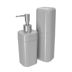 Material Poliestireno Linha Banho Splash Tipo de Produto Banho Composição 01 Porta Sabonete Líquido 01 Porta-escova com Tampa Splash Marca: Coza/Brinox