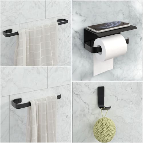 Kit De Acessórios Para Banheiro Preto 4 Peças Linha Stander