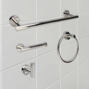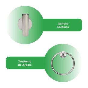 Itens inclusos: - 1x Porta toalha de banho - 1x Porta papel higiênico - 1x Gancho multiúso - 1x Toalheiro de argola - Kit Parafusos e buchas para instalação