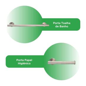 Itens inclusos: - 1x Porta toalha de banho - 1x Porta papel higiênico - 1x Gancho multiúso - 1x Toalheiro de argola - Kit Parafusos e buchas para instalação