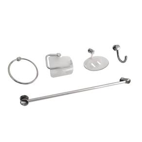 O Kit RIO contém 5 peças elegantes e práticas para instalação para você usar no seu banheiro. No kit, você receberá: Porta Toalha Barra, Porta Toalha Argola, Cabide Simples, Porta Papel Higiênico e Saboneteira de Parede.