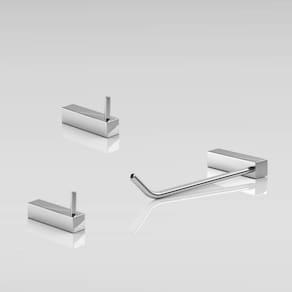 ITENS ENVIADOS: 1 cabide, 1 porta papel higiênico, 1 toalheiro rosto 30cm, kit de parafusos e manual instrução instalação.