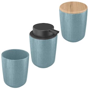 - 01 Porta Algodão e Cotonete Osaka AZUL Com Tampa de Bambu - 8cm x 10,5cm 290gr